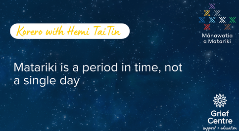 We had the pleasure of a korero with Hemi Tai Tin chatting about Matariki, it's significance and how it relates to our kaupapa and mahi here at Grief Centre. Click on the images below to watch the videos of our korero.